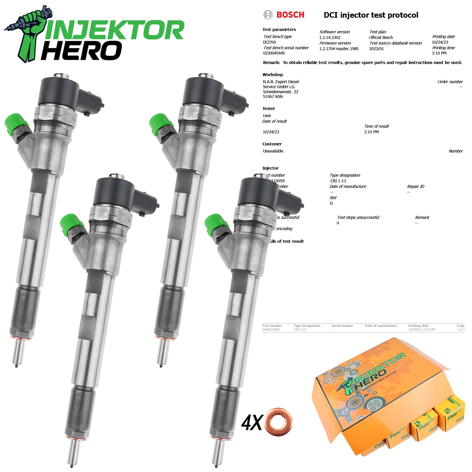 Bei unserer Ware handelt es sich um generalüberholte Injektoren. Für den fachgerechten Einbau des gelieferten Teils sind Sie selbst verantwortlich. Wir empfehlen dringend, die Einbau- und Funktionsprüfung durch qualifiziertes Fachpersonal durchführen zu lassen. Bitte stellen Sie vor dem Einbau sicher, dass das Teil in Maß, Form und Anschluss dem Original entspricht. Bei Abweichungen kontaktieren Sie uns bitte vor der Montage.